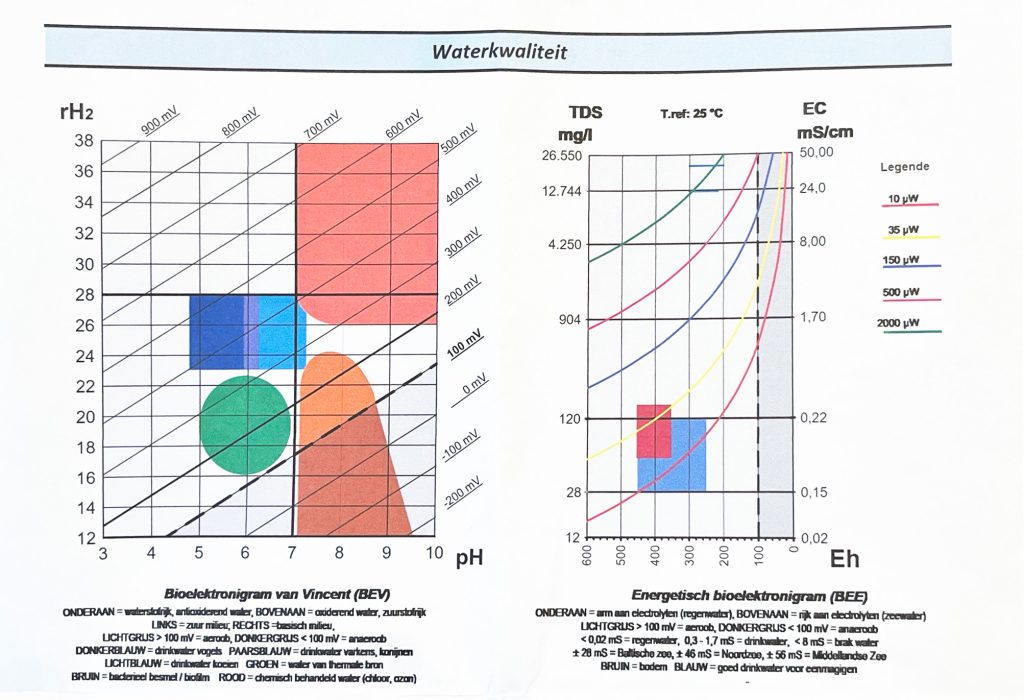 Het Bioelektronigram van hydroloog Louis Claude Vincent (BEV) is een diagram van bijna 80 jaar oud, dat nog steeds actueel is voor het bepalen van de juiste waterkwaliteit. Met de BEV in het achterhoofd hebben wij gezocht naar het toevoegen van de optimale hoeveelheid zuurstof aan drinkwater om de voor melkkoeien optimale verhouding tussen de redox- en pH-waarde te krijgen. Deze methode geeft ons de zekerheid dat het water niet alleen schoon is, maar ook actief bijdraagt aan de gezondheid van je vee.