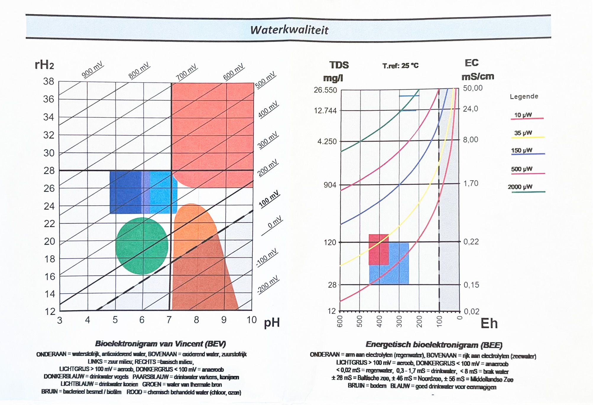 Het Bioelektronigram van hydroloog Louis Claude Vincent (BEV) is een diagram van bijna 80 jaar oud, dat nog steeds actueel is voor het bepalen van de juiste waterkwaliteit. Met de BEV in het achterhoofd hebben wij gezocht naar het toevoegen van de optimale hoeveelheid zuurstof aan drinkwater om de voor melkkoeien optimale verhouding tussen de redox- en pH-waarde te krijgen. Deze methode geeft ons de zekerheid dat het water niet alleen schoon is, maar ook actief bijdraagt aan de gezondheid van je vee.